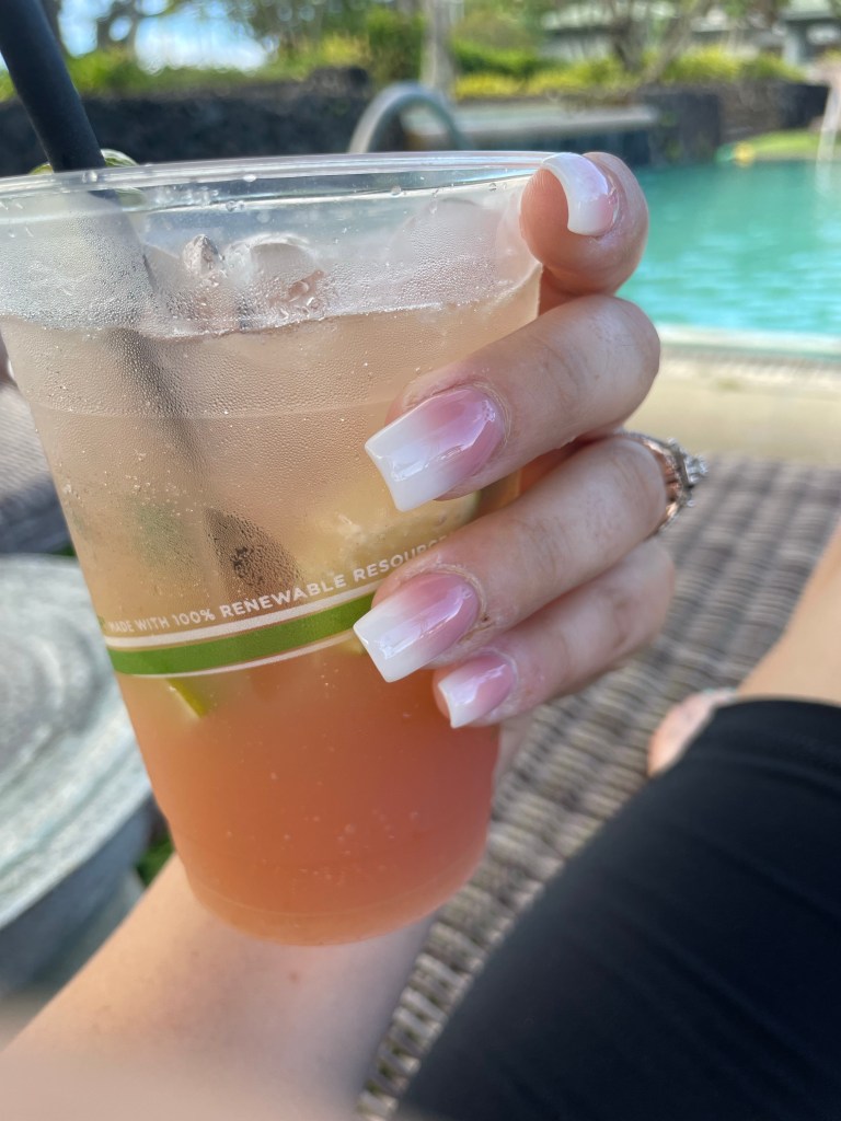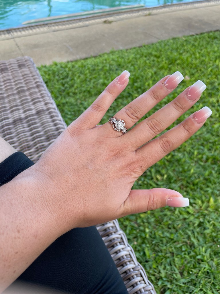 My nails were an ombre acrylic with white and dark pink. My nail artist’s name is Thu Phan, and she went above and beyond for me. She was thrilled to be doing the bride’s nails and really dug into it. Super fun.